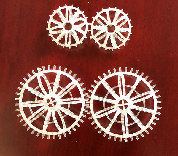 花環(huán)填料的主要特點是填料的空隙率大,不易被堵塞,還有通量大、阻力小等優(yōu)點,花環(huán)填料也稱梅花環(huán)填料是由許多圓環(huán)結(jié)繞而成,由于填料的空隙處能有較高的持液量,由于這種填料的間隙處能有較高的滯液量,可使塔內(nèi)液體停留時間較長,從而增加了氣液的接觸時間,提高了填料的傳質(zhì)效率。聚丙烯填料具有空隙率大,壓降和傳質(zhì)單元高度低,泛點高,汽液接觸充分,比重小,傳質(zhì)效率高等特點,多用于氣體洗滌、凈化塔中。